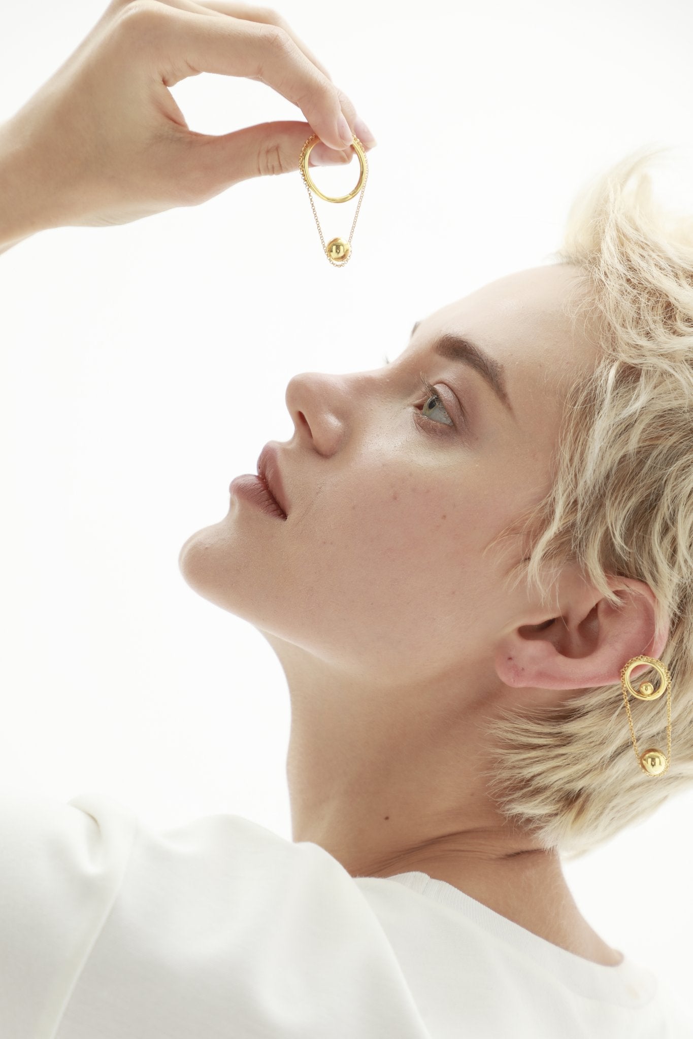 Golden Satellite On The Chain Earring / Brooch